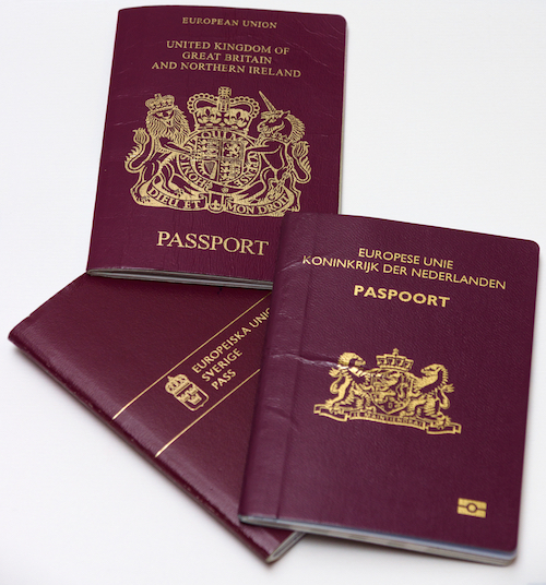The little symbol in the bottom right of the frontmost passport in this picture indicates the presence of a chip capable of storing personal information, including fingerprints and eye scans. Copyright Sergey Kohl, via Shutterstock