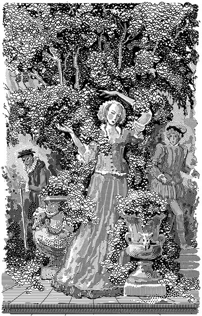 Signor Baglioni, who drops in unannounced and unwelcome one morning, informs Giovanni that his spirit is misleading him. Baglioni tells him the story, from “an old classic author,” about the beautiful woman whom an Indian prince sent as a gift to Alexander the Great. Her beauty enraptured the young conqueror; her breath, “richer than a garden of Persian roses,” especially allured him. A shrewd physician, however, warned Alexander to stay away: the beauty had been nourished with poisons from her birth, so that “she herself had become the deadliest poison in existence.” The prince’s murderous cunning, Baglioni goes on, has found its evil match in Rappaccini’s heartless scientific audacity: Beatrice too is envenomed, and her father intends Giovanni as a lab rat. “Perhaps the result is to be death; perhaps a fate more awful still.” To save Giovanni and Beatrice, Baglioni gives the youth a silver vial, wrought by the celebrated sculptor Benvenuto Cellini, that contains the antidote to Rappaccini’s poison.