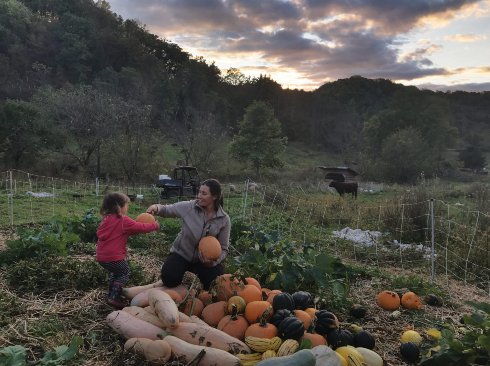 On a bright morning in mid-September, I grip my five-month-old in one arm and a fistful of straw in the other while Joel Salatin trundles his tractor up toward the pastures of Polyface Farm, nestled in the Shenandoah Valley.