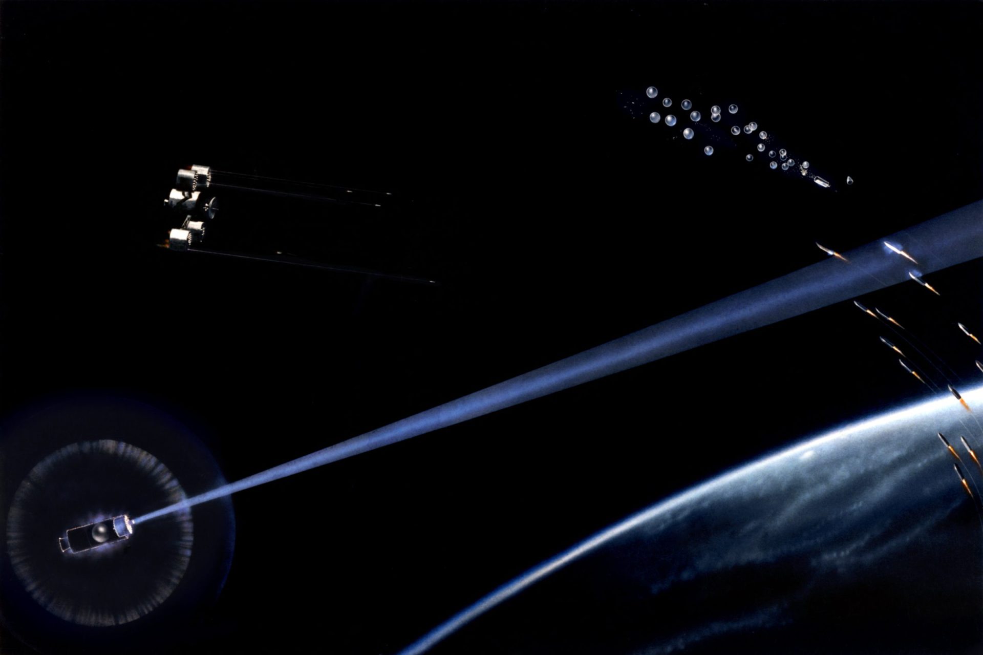 An artist’s rendering of a satellite laser weapon system — part of President Ronald Reagan’s Strategic Defense Initiative, or Star Wars